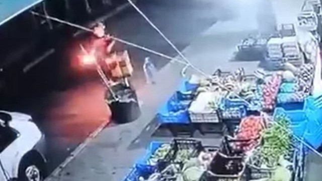 İstanbul Küçükçekmece'de bir şahıs, markete molotofkokteyli atıp kaçtı. Olay saniye saniye güvenlik kamerasına yansıdı. Olay, dün gece Küçükçekmece Kanarya Mahallesi'ndeki bir marketin önünde meydana geldi. İddiaya göre, kimliği belirsiz bir şahıs, cadde üzerindeki marketin önüne geldi. Şüpheli, eline aldığı molotofkokteylini markete doğru fırlatıp kaçtı. Markette yangın çıkmadan iş yeri sahibi duruma müdahale etti. Market sahibinin ihbarı üzerine olay yerine gelen polis ekipleri, şahsı yakalamak için çalışma başlattı. Şahsın molotofkokteyli atma ve kaçma anı ise güvenlik kamerasına yansıdı.