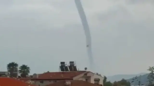 Muğla'nın Marmaris ilçesinde oluşan hortum vatandaşlar tarafından cep telefonu kamerasıyla kaydedildi. Bozburun Mahallesi'nde deniz üzerinde oluşan hortum, bölgede kısa süreli tedirginliğe yol açtı. Aniden belirip yükselen hortum vatandaşların cep telefonu kamerasıyla kaydedildi. Görüntülerde hortumun dakikalarca etkisini sürdürdüğü görülürken, kıyıya ulaşmadan dağılan hortumun herhangi bir can veya mal kaybına neden olmadığı öğrenildi.