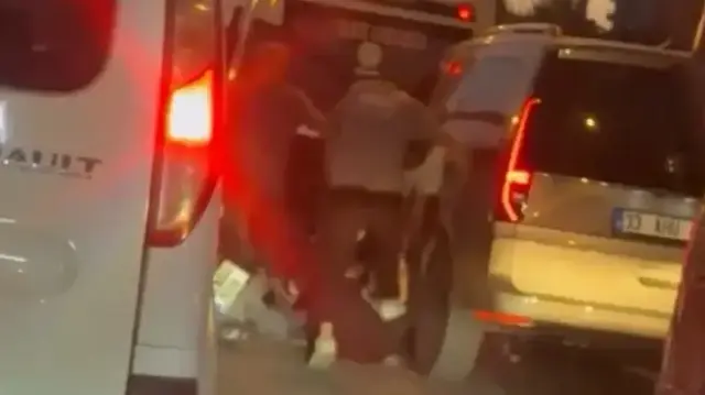 Mersin’de trafikte tartıştıkları bir araç sürücüsünü feci şekilde darbeden motosikletli 2 şüpheli yakalandı. Olay, akşam saatlerinde merkez Toroslar ilçesi Akbelen Bulvarı üzerinde meydana geldi. Trafikte bilinmeyen nedenle motosiklet üzerindeki iki kişi ile hafif ticari araç sürücüsü arasında tartışma çıktı. Motosikletli 2 kişiden biri, sürücüsüyle tartıştıkları hafif ticari aracı tekmeledi. Bunun üzerine aracından inerek motosikletli kişilere müdahale etmek isteyen sürücü, yere yatırılarak, tekme ve yumduk darbeleriyle dövüldü. Çevredeki sürücülerin müdahalesiyle sona eren kavga, bir başka sürücünün cep telefonu kamerasına yansıdı.