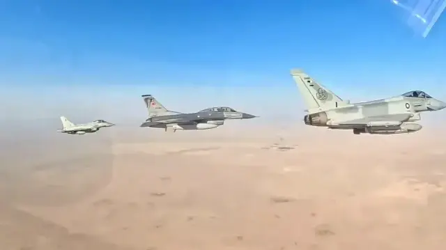 "Katar’ın ev sahipliğinde gerçekleştirilen Yırtıcı Şahin-6 Tatbikatına, Dukhan Hava Üssü/Katar’da konuşlu bulunan Hava Unsur Komutanlığına ait 3 adet F-16 uçağımız ile katıldık. Türk Hava Kuvvetleri, uluslararası iş birliği ve müşterek harekât kabiliyetini geliştirmeye yönelik faaliyetlerini başarıyla sürdürüyor."
