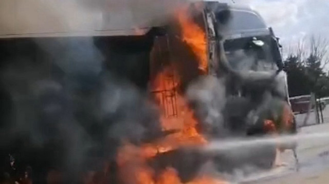 Uşak'ta merkeze bağlı İkisaray köyü yakınlarında bir iş yerinin önünde park halindeki tırda henüz belirlenemeyen nedenle yangın çıktı. İhbar üzerine bölgeye gelen itfaiye ekipleri yangını söndürürken, tır kullanılamaz hale geldi.