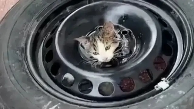 Çankırı’da bir otomobilin stepnesine sıkışan yavru kedi, itfaiye ekiplerinin titiz çalışmasıyla kurtarıldı. Olay, sabah saatlerinde kent merkezinde meydana geldi. Park halindeki bir otomobilin stepnesinden ses geldiğini fark eden vatandaşlar, kontrol ettiklerinde bir yavru kedinin jant kısmına sıkıştığını gördü. Durumu hemen itfaiye ekiplerine bildiren vatandaşlar, kediyi kendi imkanlarıyla çıkaramayınca yardım istedi. İhbar üzerine bölgeye gelen Çankırı Belediyesi İtfaiye Müdürlüğü ekipleri, kediyi zarar vermeden kurtarmak için çalışma başlattı. Yaklaşık 20 dakikalık titiz müdahalenin ardından kafası jant arasına sıkışan yavru kedi bulunduğu yerden çıkarıldı.Kurtarılan minik kediye ekipler tarafından su verilip sağlık kontrolü yapıldıktan sonra doğal yaşam alanına bırakıldı.