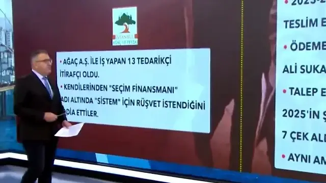 İstanbul Büyükşehir Belediyesi’nin (İBB) iştirak şirketi Ağaç A.Ş.’yi de kapsayan “İmamoğlu çıkar amaçlı suç örgütü” soruşturmasına ilişkin iddianamede çarpıcı detaylar ortaya çıkmaya devam ediyor. Savcılığın tespitlerine göre, Ağaç A.Ş. ile çalışan 13 tedarikçi firma, etkin pişmanlık kapsamında verdikleri ifadelerde kendilerinden “sistem ve seçim finansmanı” adı altında rüşvet talep edildiğini tek tek anlattı.