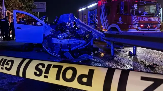 Ümraniye'de kontrolden çıkarak bariyerlere saplanan otomobildeki 1 kişi öldü, 1 kişi ağır yaralandı.