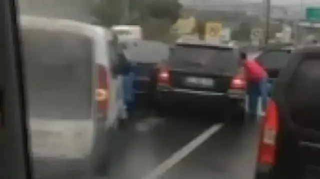 Esenyurt’ta zincirleme kazayı cep telefonuyla kaydeden kamyonet şoförü, kaza yerine odaklanırken önündeki kadına çarptı. Kadın ağır yaralanarak hastaneye kaldırıldı. HABER METNİ: İstanbul Esenyurt’ta TEM Otoyolu’nda yağmur sonrası kayganlaşan yolda zincirleme kaza meydana geldi. Kazayı cep telefonuyla kaydeden kamyonet şoförü, dikkatsizliği nedeniyle kaza alanındaki kadına çarptı. Kaza, saat 11.00 sıralarında gişeler mevkiinde yaşandı. İddiaya göre 3 aracın karıştığı zincirleme kazanın ardından sürücüler araçlarından indi. O sırada araç içindeki çantasını almaya çalışan bir kadın, aracın geri manevra yapması sonucu iki aracın arasında sıkıştı ve metrelerce sürüklendi. Tam bu sırada kazayı kaydeden kamyonet şoförü de kontrolünü kaybederek kadına çarptı. O anlar saniye saniye cep telefonu kamerasına yansıdı. Yaralı kadın, olay yerine gelen sağlık ekipleri tarafından hastaneye kaldırıldı. Polis ekipleri kazayla ilgili inceleme başlattı.