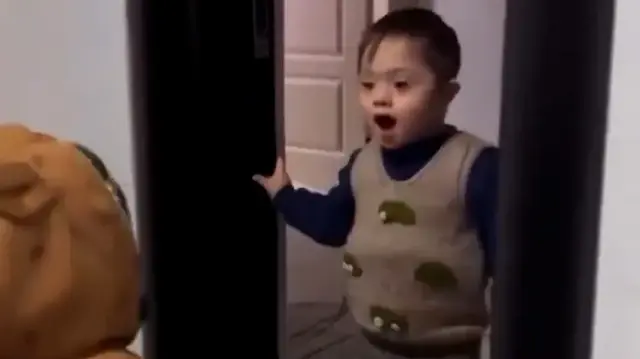 Down sendromlu çocuk en yakın arkadaşını kapıda görünce böyle sevindi