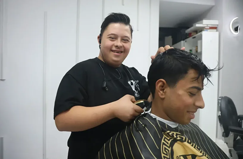 Hatay’ın Antakya ilçesinde yaşayan 16 yaşındaki Down sendromlu Şükrü Dağlı, çırak olarak girdiği kuaför salonunda kısa sürede hem ustaların hem de müşterilerin sevgilisi oldu. Kendine ait berber koltuğu, özel hareketleri ve içten tavrıyla Şükrü, artık mahallenin en sevilen berberi olarak anılıyor. 2025 yılı Nisan ayında kuaför Cuma Karaahmetli’nin iş yerinde vakit geçirmek için bulunmaya başlayan Şükrü, kısa sürede mesleğe olan ilgisi ve öğrenme isteğiyle dikkat çekti. Zamanla saç yıkamadan sakal makinesine, ense tıraşından müşteri karşılama davranışlarına kadar birçok işi yapmayı öğrenen Şükrü, bugün artık kendisine ayrılan özel koltuğunda müşterilere hizmet veriyor.