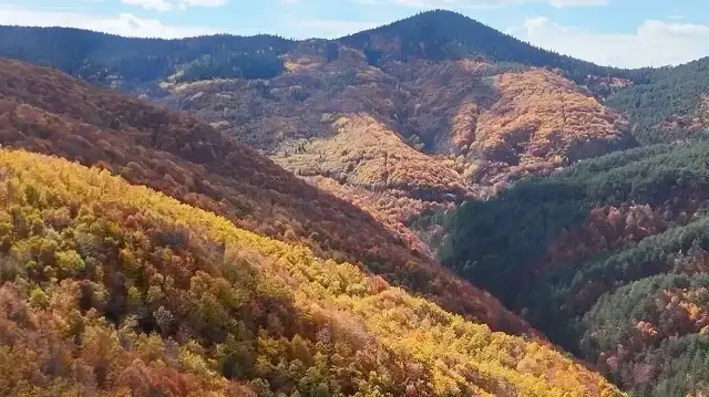 Kastamonu'da hava sıcaklıklarının düşmesiyle birlikte sonbaharın tüm ihtişamını sergileyen ormanlar, sarı, kırmızı ve kahverengi tonlara bürünerek adeta bir renk cümbüşü oluşturdu. Ilgaz Dağları eteklerinde kartpostallık manzaraların ortaya çıktığı bu eşsiz doğa güzelliği, havadan görüntülendi. Sonbahar mevsimiyle birlikte ağaçların yarattığı bu büyüleyici manzara, görenleri kendine hayran bıraktı. Özellikle Kastamonu-Ankara karayolunun Ilgaz Dağı kesiminde yolculuk yapan vatandaşlar, mest edici bu manzarayı yakından görme fırsatı buldu. Ağaçların eşsiz buluşması ve doğal güzellikler, drone ile kaydedilen görüntülere yansıdı.