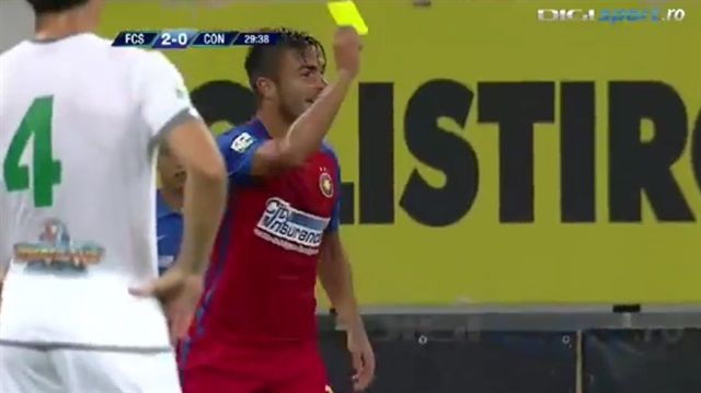Romanya 1. Ligi'nde Steaua Bükreş'in sahasında Concordia Chiajna'yı 3-1 mağlup ettiği maçta ilginç bir an yaşandı. Hakemin düşen kartını aldığı sırada kendisine faul yapılan Alin Tosca pozisyon sonrası rakibine sarı kart gösterdi. İşte o anlar...