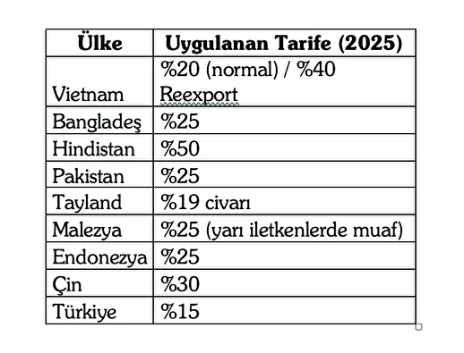 Türkiye’nin, Hindistan ve Uzak Asya’nın ABD vergileri ile zora düştüğü durumdan, kaliteli ürün, yerelleşmiş dizayn ve hızlı lojistik ile pazar payı almaya çaba koyması gereklidir.
