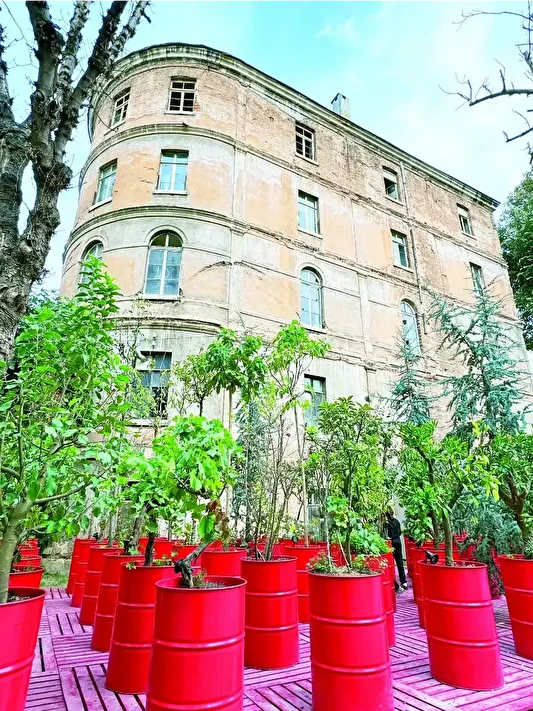 Bienal toplam 8 mekanda yer alıyor. Yaklaşık 1 günde bütün mekanları ziyaret etme şansımız var. Mekanların hepsi bir birine yakın olduğu için yürüyerek gezmek mümkün. 1 günde hepsini ziyaret etmek mümkün lakin bütün eserlerin hakkıyla karşılığını vermek isterseniz çok daha fazla zamana ihtiyacınız olduğunu belirtmem gerek. Bienal mekanları şöyle: Elhamra Han, Eski Fransız Yetimhanesi Bahçesi, Meclis-i Mebusan, Külah Fabrikası, Zihni Han, Galeri 77, Muradiye Han, Galata Rum Okulu. Elhamra Han’da Sevil Tunaboylu, Riar Rizaldi, Lara Saab, Jagdeep Raina, Natasha Tontey, Şafak Şule Kemancı ve Mona Benyamin’in eserleri yer alıyor. İstiklal Caddesi üzerinde bulunan Elhamra Han’ın 2. katı bienalin diğer mekanlarına göre görece “sıkışık”. Hem alan olarak küçük hem de eserleri gösteren gerekli alan bence yok. Riar Rizaldi’nin popüler kültür ve bilimkurgu öğelerine yer vererek oluşturduğu Techterra üçlemesinin son filmi Bekerel (2021) son derece dikkat çekici. Daha önce hiç tanımadığım Endonezyalı sanatçının bu filminde “Güneş’in nükleer teknoloji aracılığıyla yapay olarak harekete geçirildiği ve doğaya aykırı bu ekolojik ritme uyum sağlamak üzere insanların dinlenmesinin yasaklandığı alternatif bir Endonezya”yı anlatıyor. Yaklaşık 19 dakikalık film son derece kuvvetli bir kapitalizm eleştirisi barındırıyor. 1991 doğumlu Jagdeep Raina’nın eserleriyle ilk olarak Dubai’deki Green Art Gallery’de Murtaza Vali küratörlüğünde açılan Memory is the Seamstress (Hafıza Terzidir)’de karşılaşmıştım. Bu sergideki bazı eserlerle bienalde de karşılaşmak eski bir dostla karşılaşmak gibi. Raina’nın sanat pratiği ekoloji, distopya ve siyaset ağırlıklı. Bunu yaparken de Keşmir bölgesine has bir dokuma biçimi kullanıyor. Rengarenk bu eserler Güzel Topraklar başlığını taşıyor ve Hindistan’da Amerika’nın 1960’larda uyguladığı, desteklediği Yeşil Devrim’in bıraktığı kültürel ve siyasi izleri gözler önüne seriyor. 1997 Hayfa doğumlu Filistinli sanatçı Mona Benyamin’in 11 dakikalık Tekrar, Yarın isimli eseri bir haber bülteni. Ama alışılagelmiş haber bültenlerinden hayli farklı. Filistin’in travmalarla dolu geçmişi ve bugününü anlatıyor. Bunu yaparken de zaman zaman absürtleşen, bağırmalar, tartışmalar hızlı bir görsel dille ve müziğin de etkisiyle aktarılıyor. Bunu yaparken de Filistinli olmanın bazen bilinçli bazen de bilinçsiz yanlış temsilini gözler önüne seriyor. Bienalin bir diğer mekanı olan Eski Fransız Yetimhanesi Bahçesi’nde tek bir eser var. Filistin sanatının en önemli isimlerinden biri olan Khalil Rabah’ın Kırmızı Rotavesait eseri toprak, sınır, su gibi bir çok farklı konuyu ele alıyor. Yerleştirmenin ortasından geçen dar su kanalı boyunca yer alan kırmızı boru mekanı adeta ikiye bölen bir sınır hattı çekiyor. Karşı tarafta yer alan yeşil mermer kaideyede yer alan transpalet ise ağırlık ve dengeye gönderme yapıyor (bir yandan da bienalin teması olan 3 ayaklı kedinin dengesizliğini çağrıştıyor) Diğer tarafta yer alan kırmız variller içindeki Filistin’de yetişen meyve ağaçları ve bitki örtüsünden örnekler ise kırmızı ahşap paletler üzerinde duruyor. Bu bitki ve ağaçlar canlı lakin varilin içinde yaşadıkları için köklenemiyorlar. Tıpkı vatanından kopartlılan yüzbinlerde Filistinli gibi meyve verseler de bir yanları hep eksik kalacak. Yüzden fazla varilin içinde yer alan bu ağaç ve bitkiler, varilin içinde olmasalar birbirleriyle çok daha fazla etkileşimde olabilecekken aralarındaki yapay ve endüstriyel sınırlar onları kısıtlıyor.