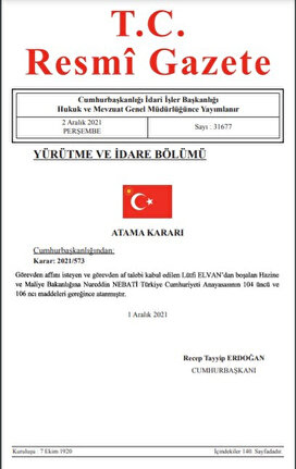Hazine ve Maliye Bakan Yardımcısı olan Nureddin Nebati Hazine ve Maliye Bakanlığı görevine getirildi.