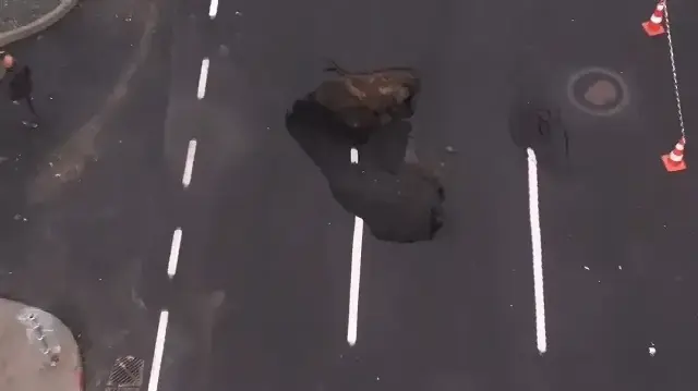 İstanbul'daki Vatan Caddesi’nde yol çöktü: 3 metre derinliğindeki çukur havadan görüntülendi