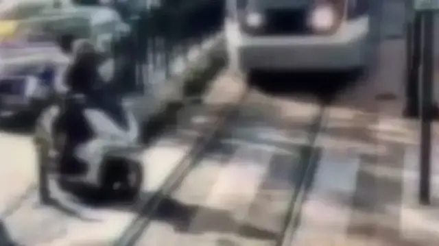 Beyoğlu’nda tramvayın motosiklete çarpma anı kamerada