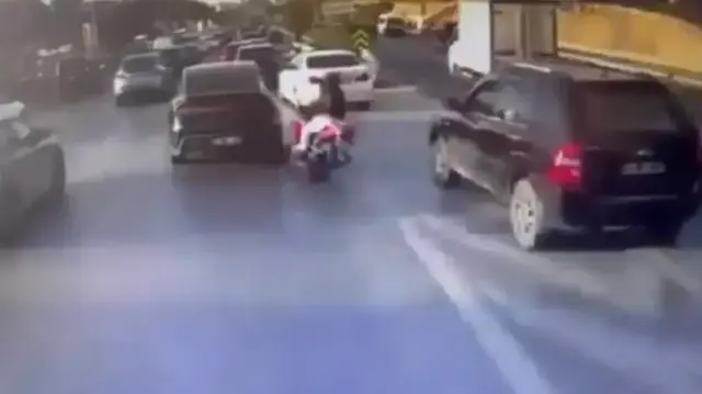Üsküdar’da ambulansa yol veren motosiklete otomobilin çarpması kamerada