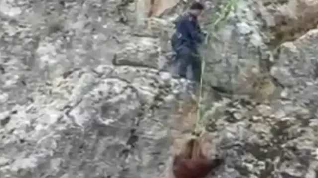 İtfaiyecilerin zorlu görevi: Kayalıklarda mahsur kalan keçilerin kurtarılma anları kamerada