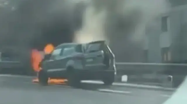 Büyükçekmece'de otomobil alev alev yandı