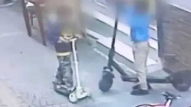 6 yaşındaki çocuklar boylarından büyük scooterı çalıp yerine oyuncağını bıraktı