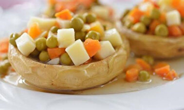 - 2.Üzerine küp doğranmış ve haşlanmış, 1'er adet patates ve havucu da ekleyip 2-3 dakika bu şekilde kavurun.